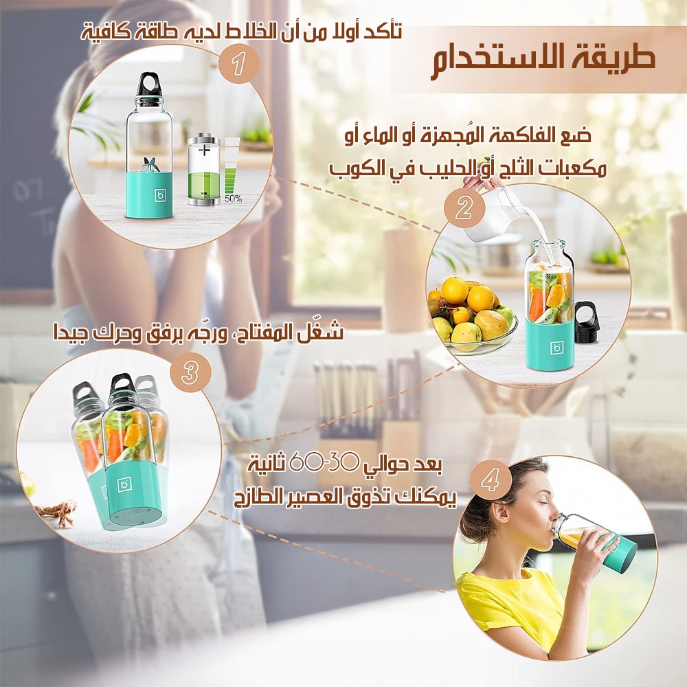 خلاط عصير محمول للفواكه والخضروات قابل للشحن Rechargeable Portable Juicer Blenderfor Fruits And Vegetables