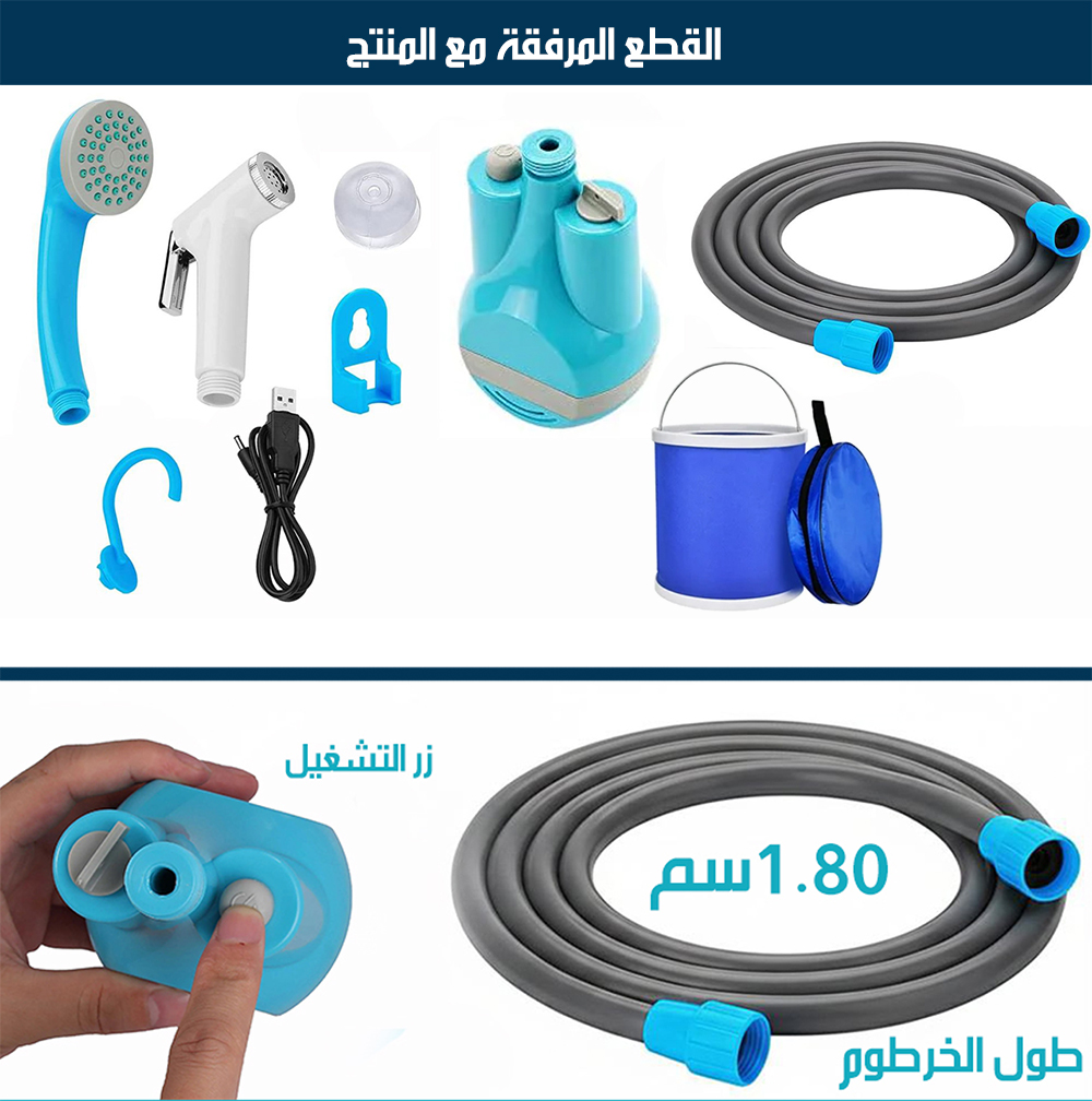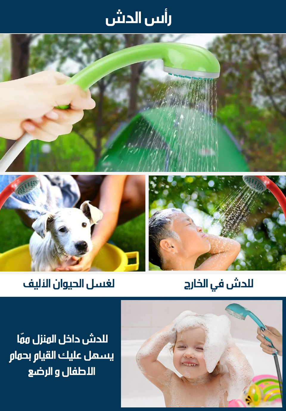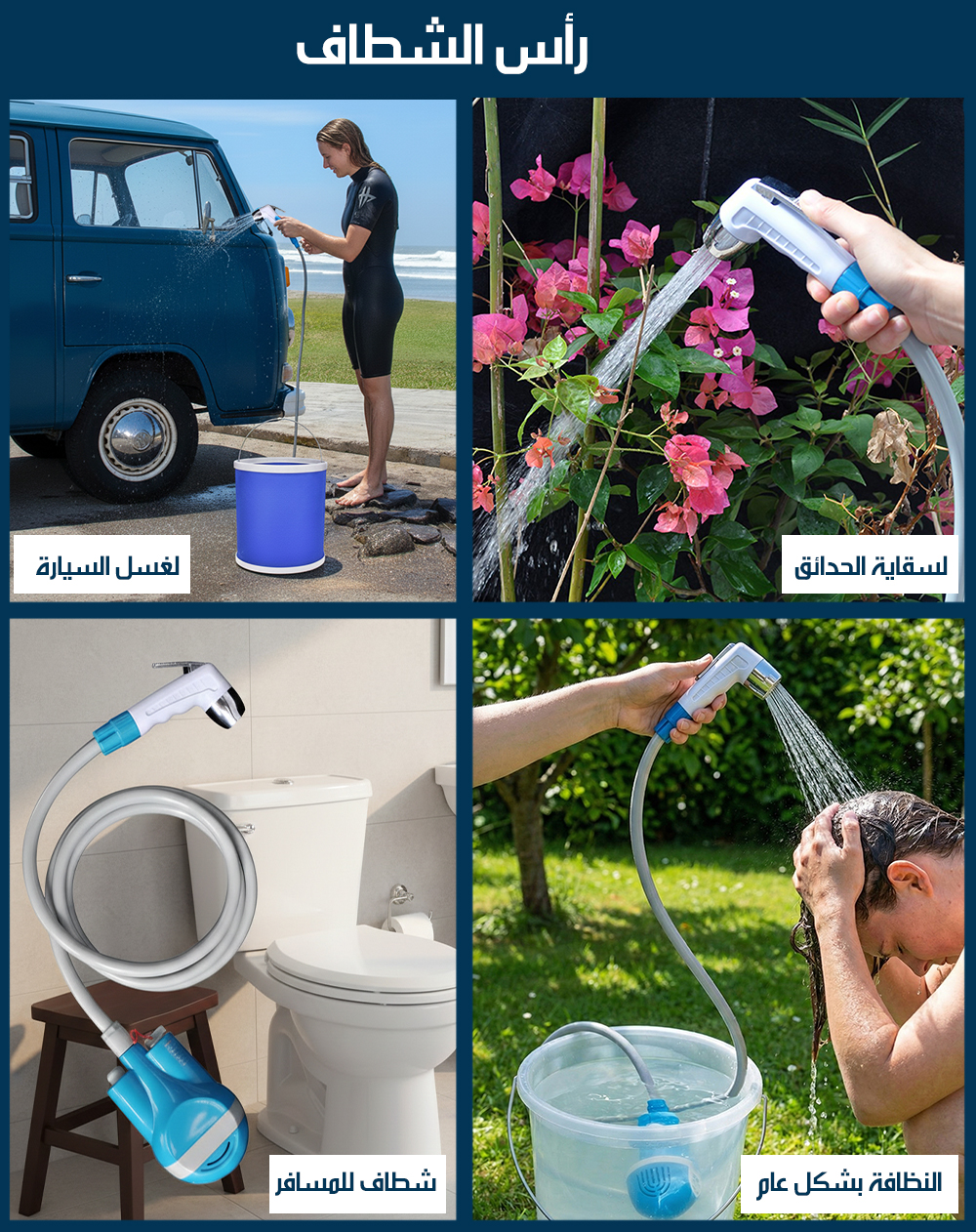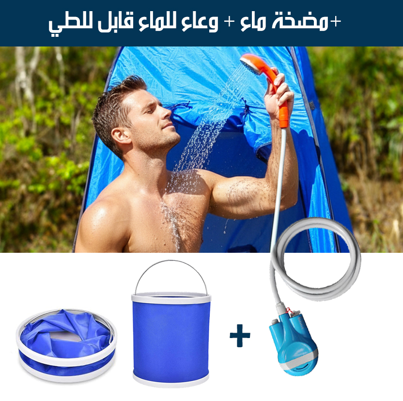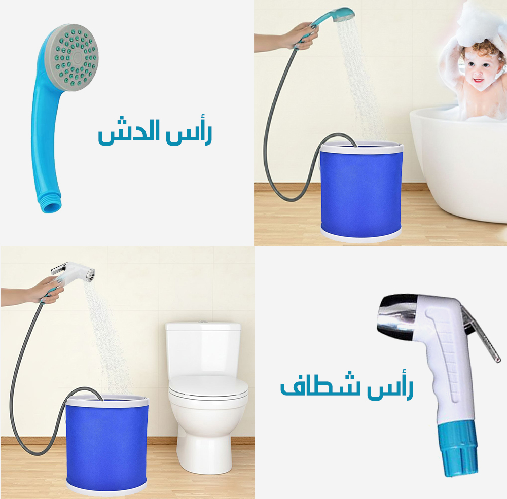 مضخة ماء برأسين (شطاف مسافر و دش) مع وعاء Portable Shower