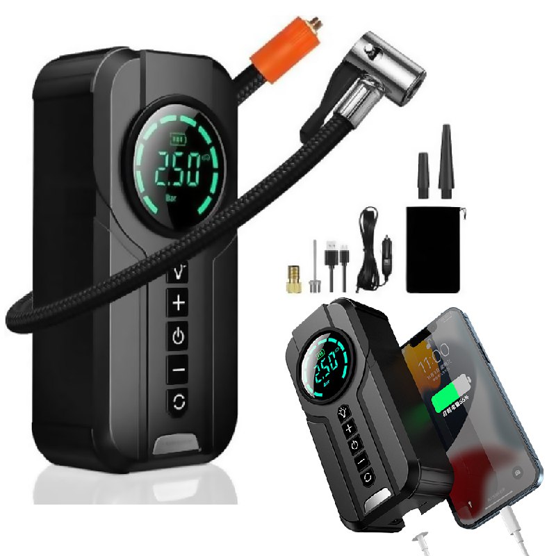 منفاخ للإطارات وباور بانك ببطارية 10400A Tire Inflator Power Bank