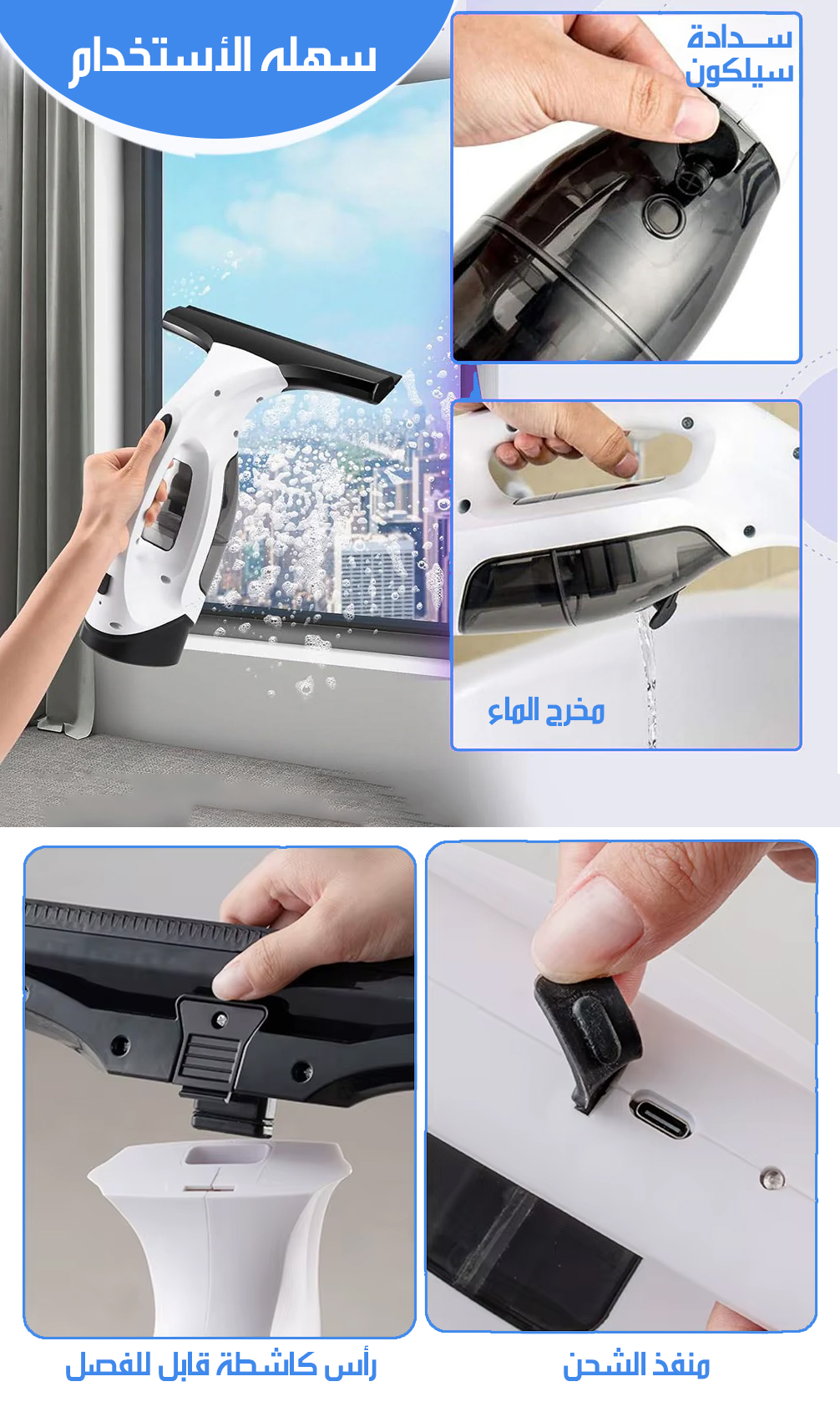 منظف نوافذ كهربائي محمول لاسلكي Cordless Window Cleaner