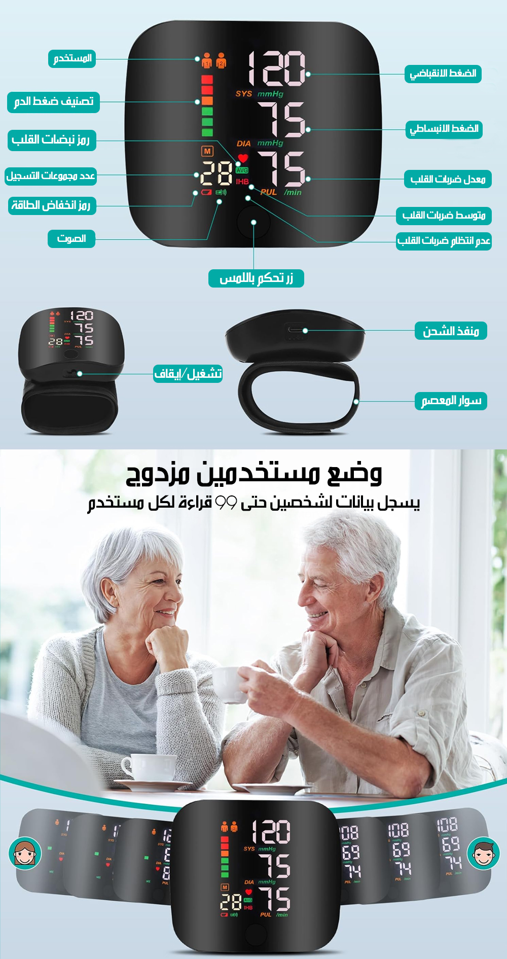جهاز قياس ضغط الدم للمعصم Wrist Electranic Sphygmomanometer