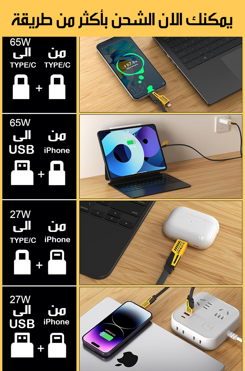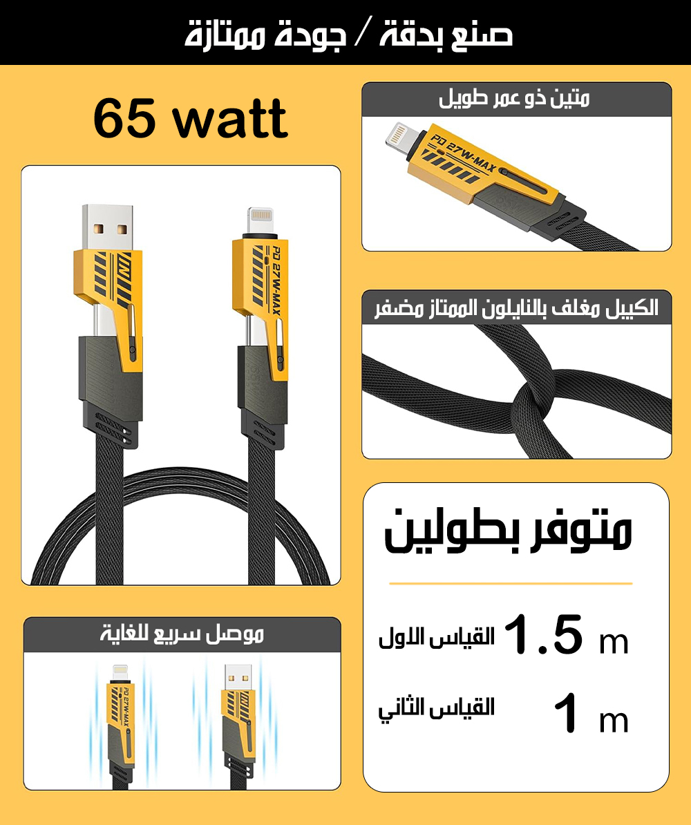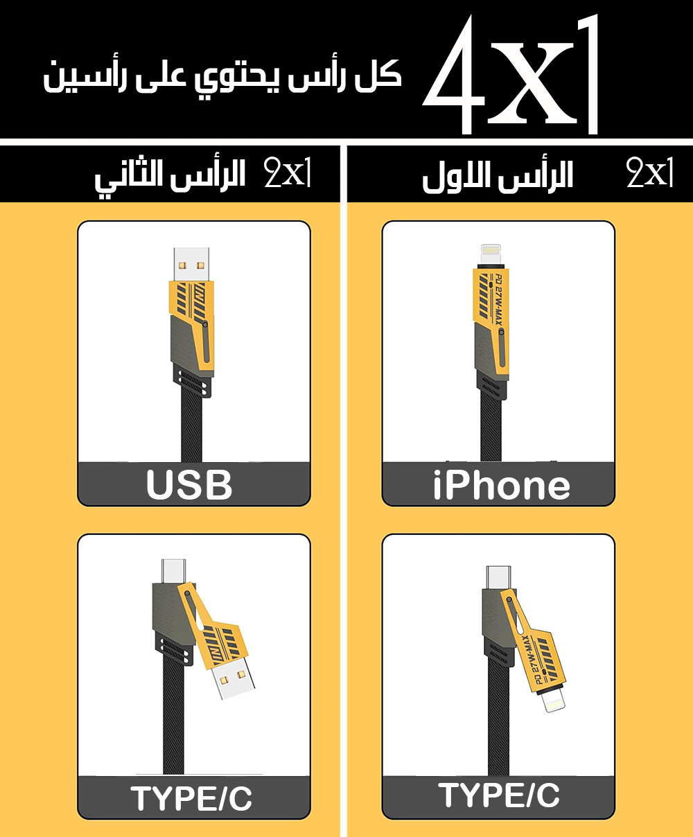 4x1 كابل الشحن السريع المتعدد الرؤوس في رأس واحد MULTI-HEAD FAST CHARGING CABLE