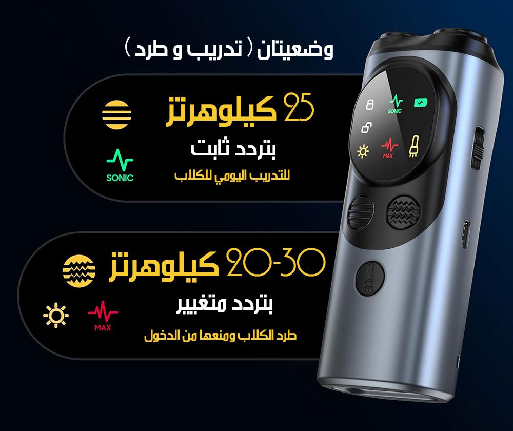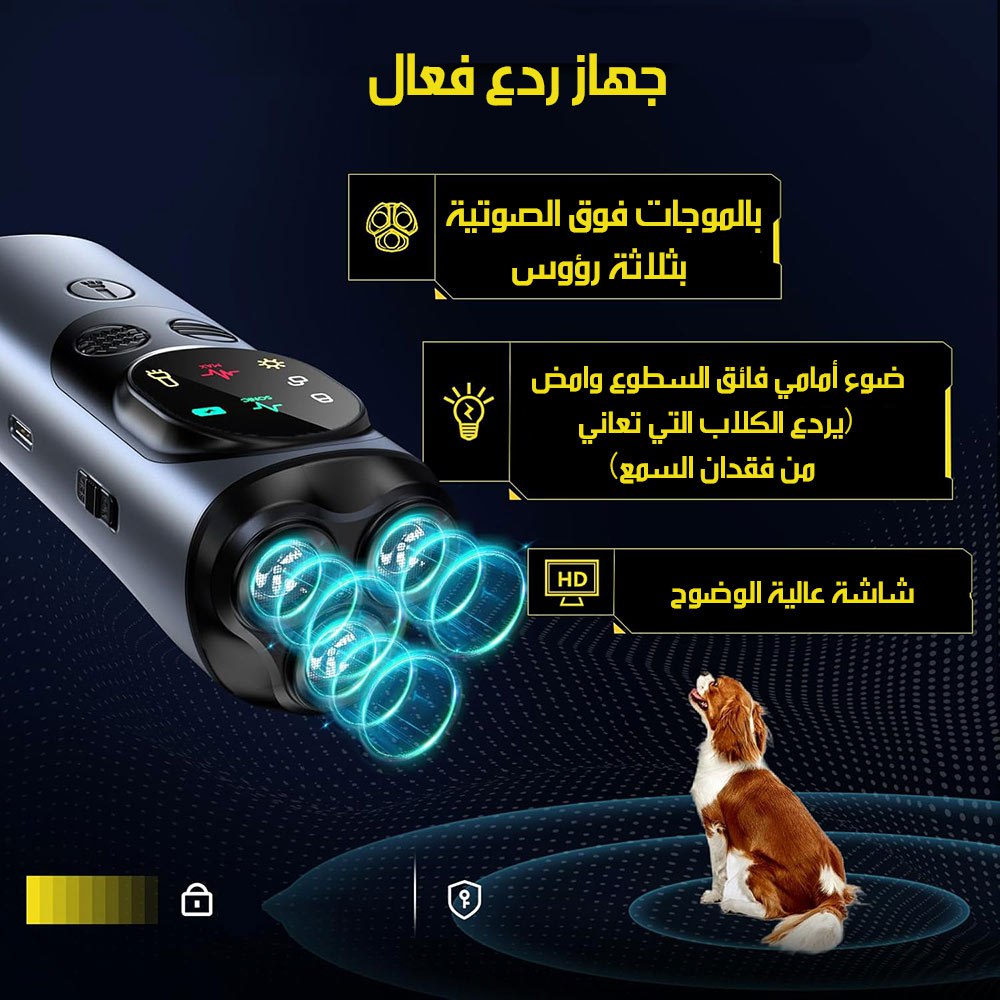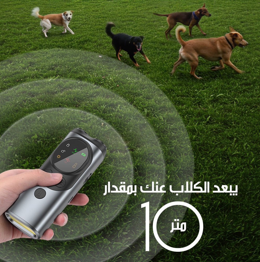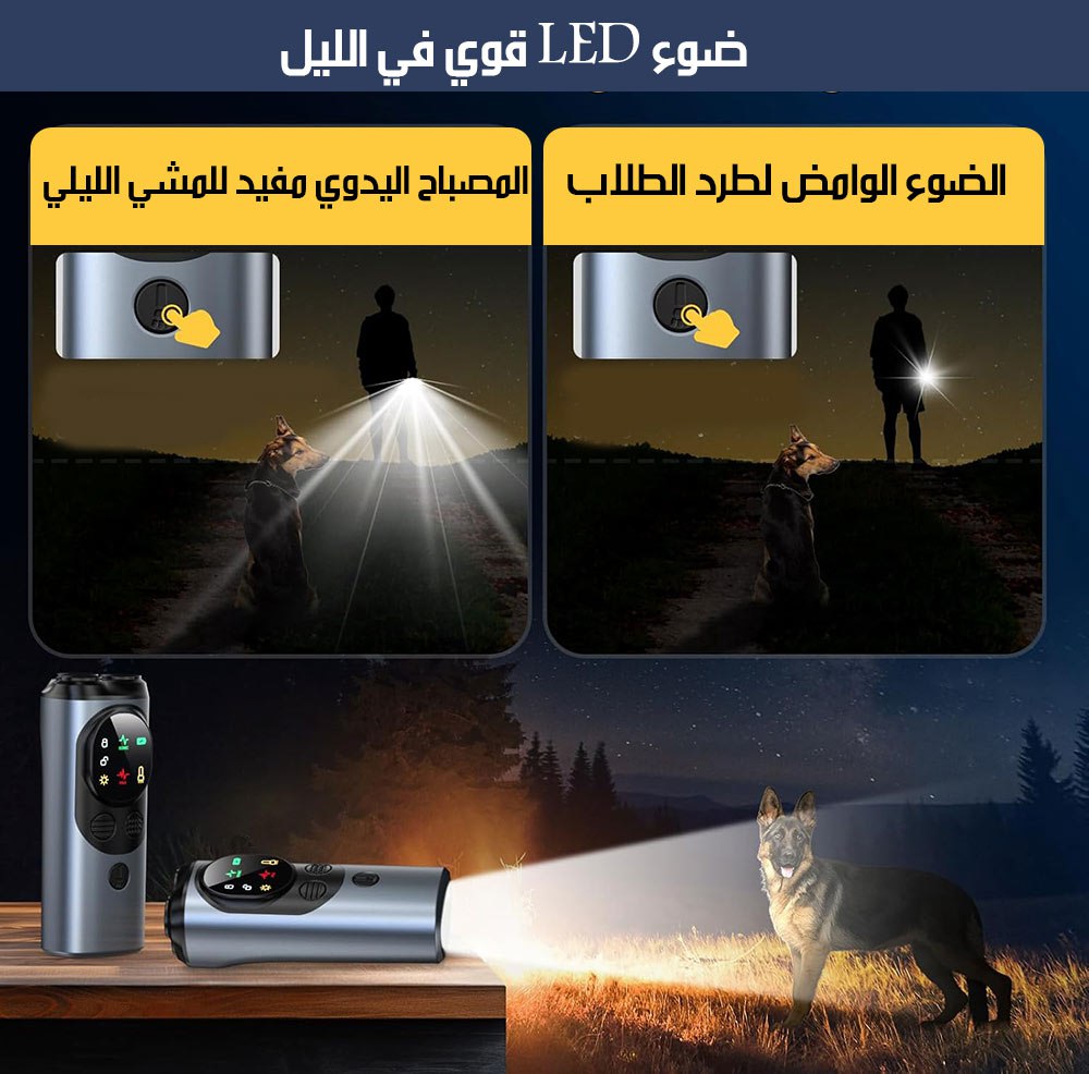 جهاز طرد و تهدئة الكلاب مع اضاءة Ultrasonic Dog Repeller