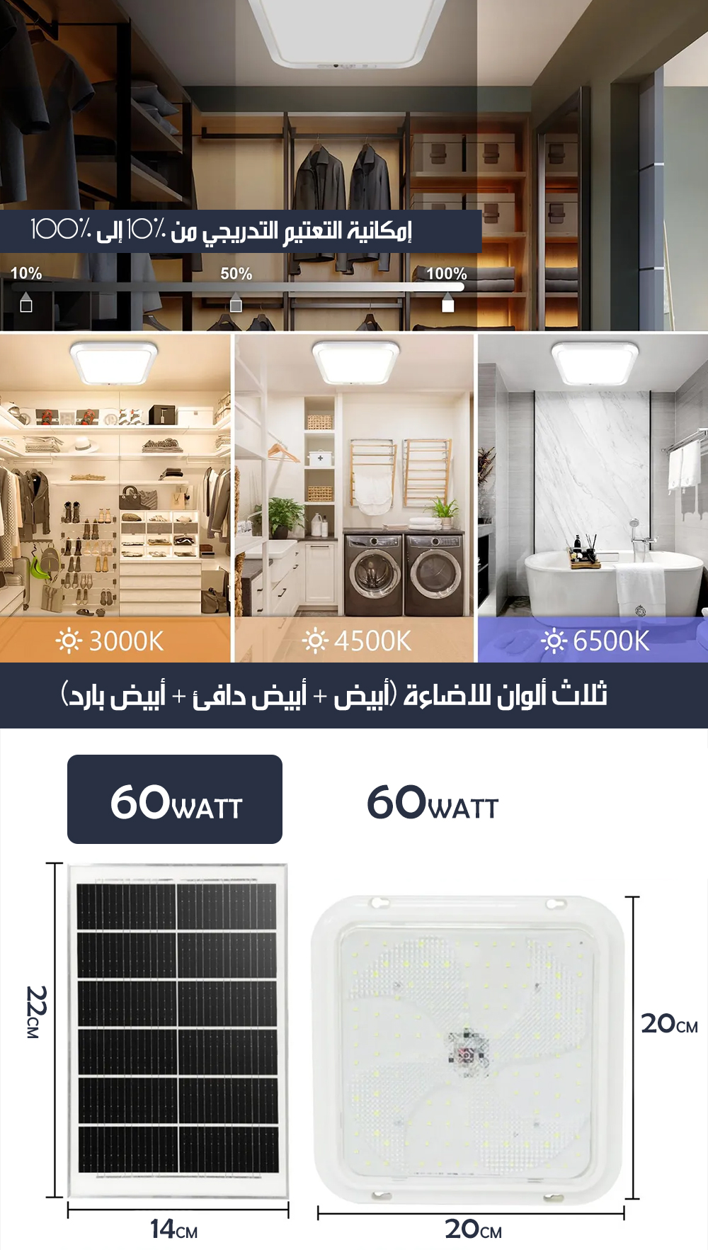 اضاءة سقف داخلية LED مقاومة للماء بالطاقة الشمسية WATERPROOF SOLAR-POWERED LED