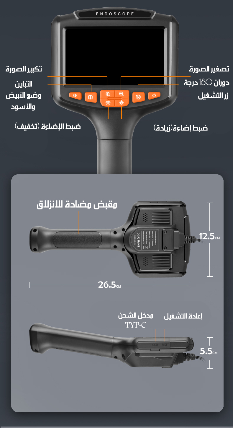 كاميرا منظار صناعي بشاشة LCD Industrial Endoscope Camera With LCD Screen