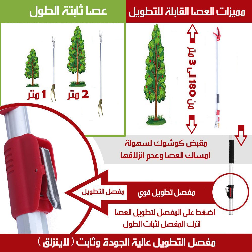 عصا إلتقاط الثمار وتجذيب الاغصان بعدة اطوال