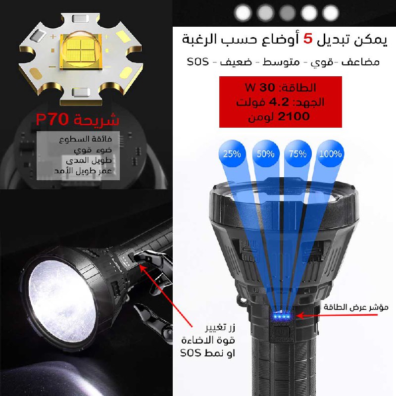 كشاف ضوئي شحن بإضاءة مضاعفة